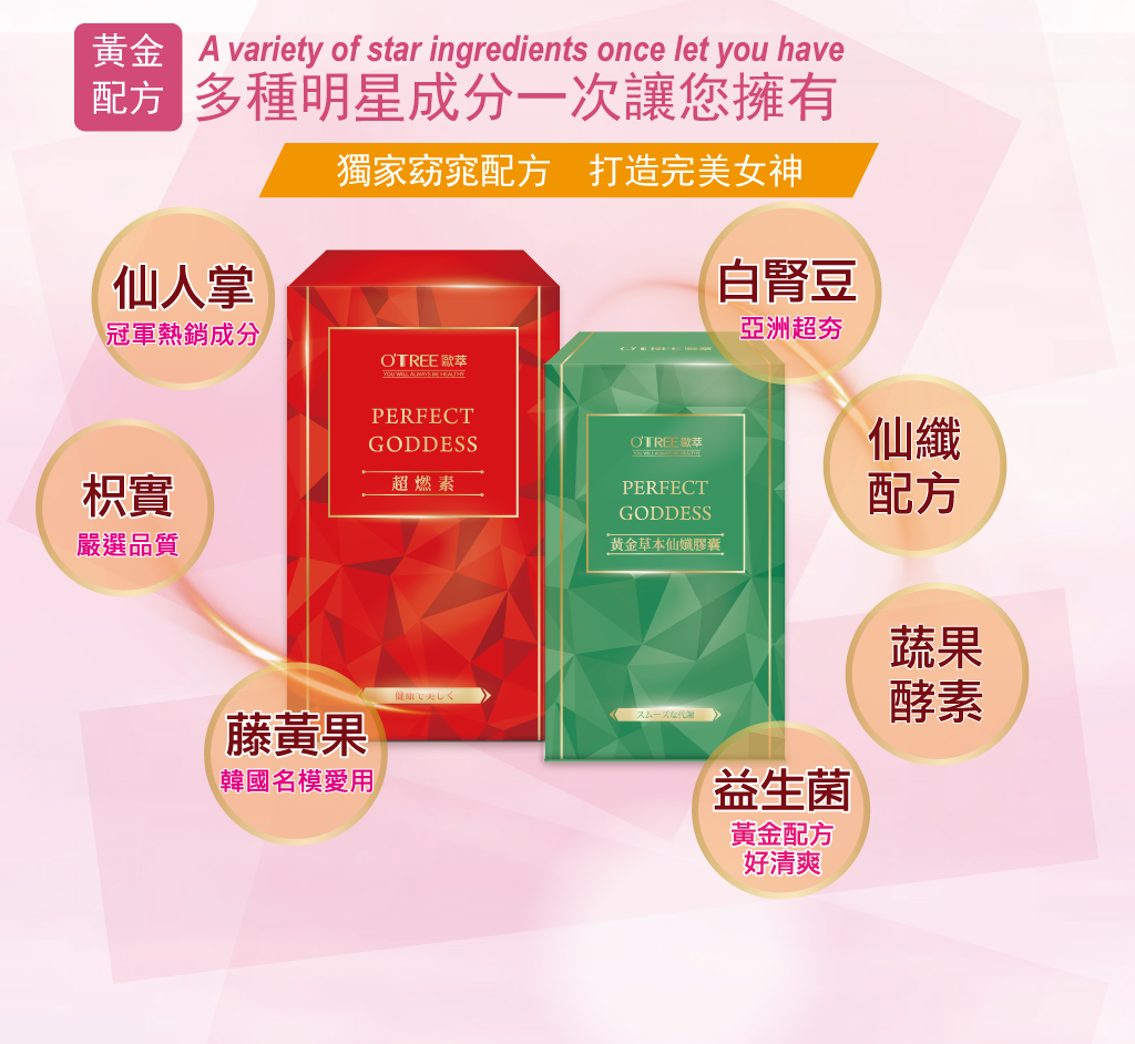 成 分:天然水果綜合酵素、仙人掌萃取、啤酒酵母、藤黃果、枳實、小麥胚芽粉、比菲德氏菌(Bifidobacterium Bifidum)、果寡糖、芡實粉、乳糖、嗜酸乳桿菌+馬鈴薯、膳食纖維、蓮子粉、薏仁粉、甘草粉末、水果粉、菜豆粉、羅望子粉、白腎豆、L-左旋肉鹼